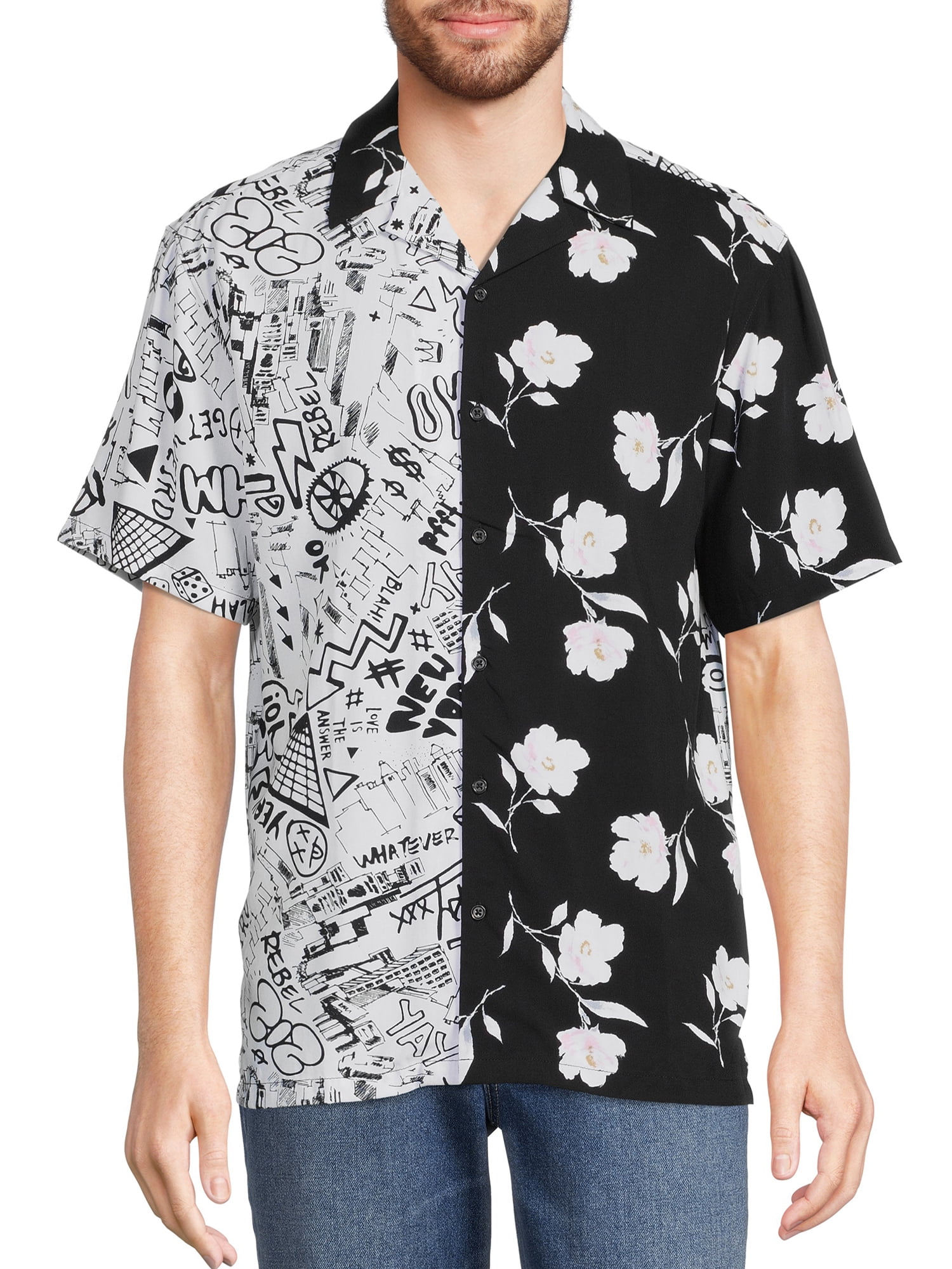 No Boundaries Men S And Big Men S Printed Rayon Shirt With Short Sleeves Walmart Com